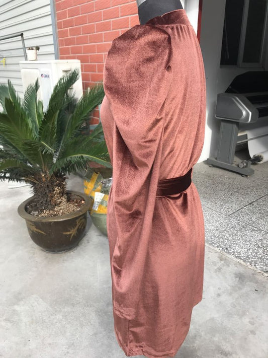 Robe en Velours Doré à Manches Bouffantes – Élégance Automne/Hiver