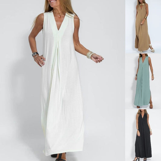 LÉA – ROBE LONGUE SANS MANCHES À POCHES