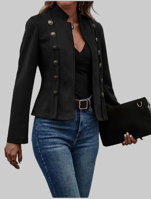 Design Intemporel : Son double boutonnage décoratif apporte une sophistication vintage qui ne se démode jamais.